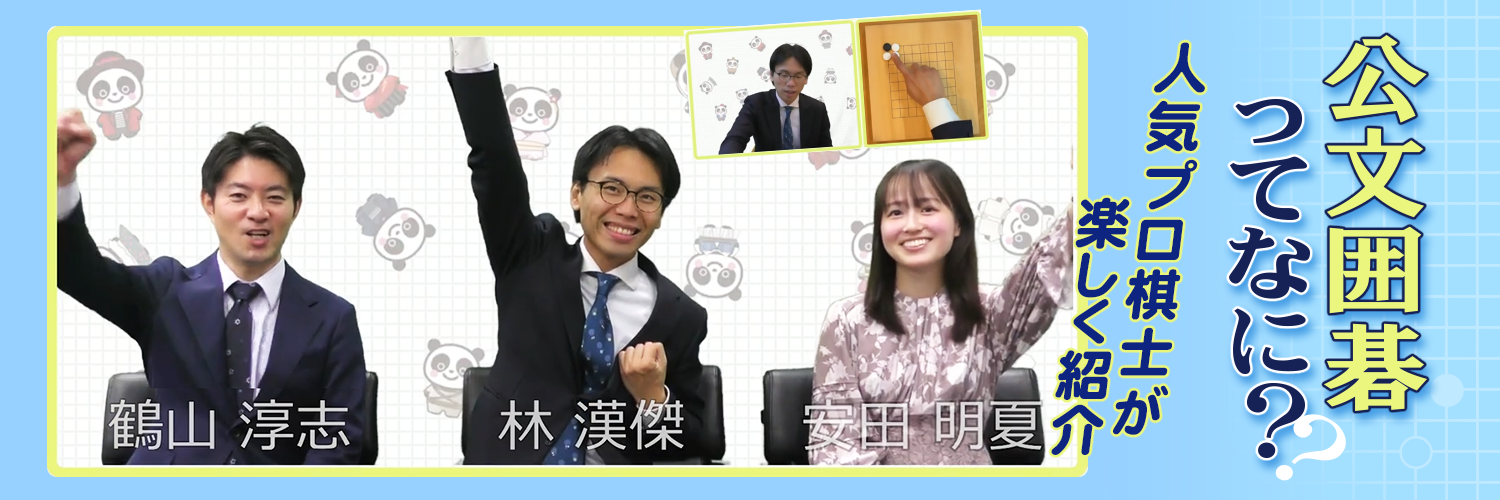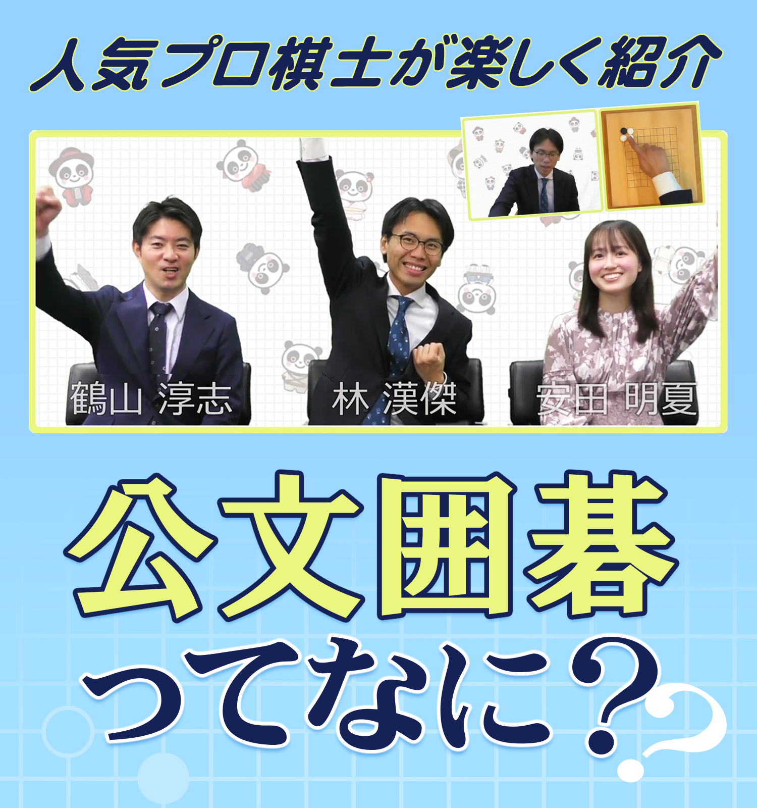 人気プロ棋士であり、囲碁普及のために尽力されている、鶴山淳志八段、林漢傑八段、安田明夏初段の3人が「公文囲碁」をわかりやすく楽しくご紹介してくださいます!